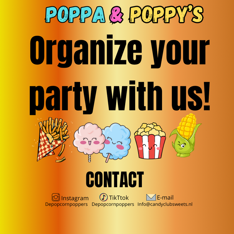 Of het nu gaat om een verjaardag, bruiloft of bedrijfsevenement, wij zorgen voor een onvergetelijke ervaring met verse popcorn en suikerspin ter plaatste.
